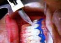 (5)ホワイトニング 剤をカスタムトレーに流し込んで、一定の時間はめておきます。